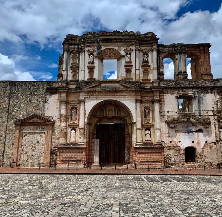 Most visitors agree that Antigua is one of the most charming cities in the americas, due to its cobblestone streets, beautiful plazas, fountains, and baroque-influenced colonial architecture, including several earthquake ruins of buildings scattered throughout the city, as well as the three majestic volcanoes that stand tall in the backdrop.